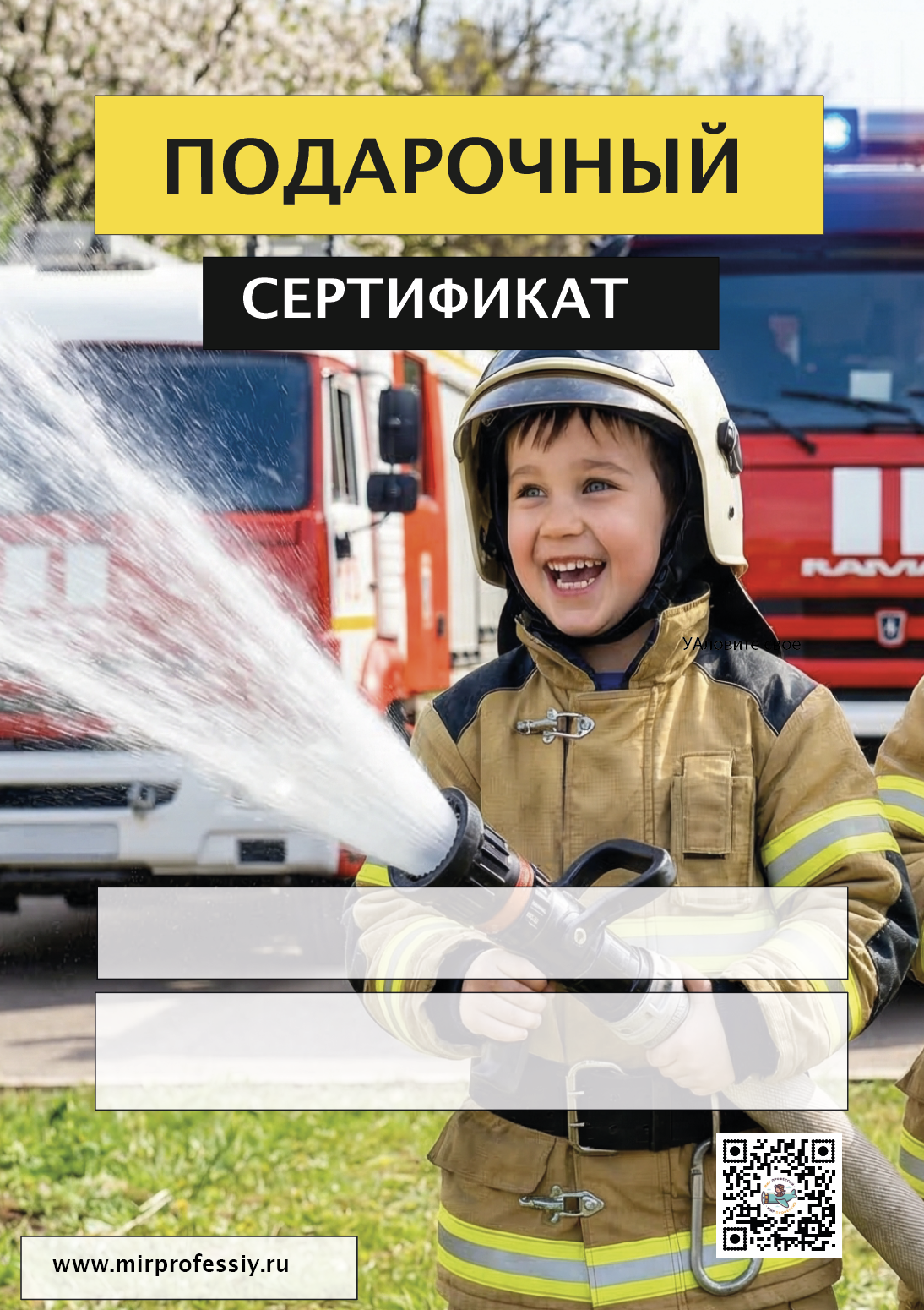 На пожарную экскурсию можно оформить подарочный сертификат. Отличный подарок для детей, внуков, племянников, братишек и сестренок. Сертификат электронный, мы вам его присылаем на почту в PDF формате, вам нужно только распечатать. Срок действия сертификата - 6 месяцев. Сертификат можно оформить на любое количество детей и взрослых. Например, стоимость сертификата на одного ребенка и одного взрослого, согласно тарифу, будет стоить 4800р.